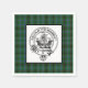 Paper party napkins featuring Scottish Clan Duncan tartan plaid pattern background with crest badge centre