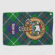 Clan Duncan crest badge surrounded by a strap and buckle over tartan background. Custom text.