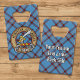 Clan Elliot crest badge surrounded by a strap and buckle over ancient tartan background. Custom text on both sides.