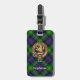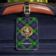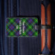 Clan Farquharson crest badge surrounded by a strap and buckle over tartan background. Custom text on both sides.