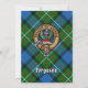 Clan Ferguson crest badge surrounded by a strap and buckle over tartan background. Custom text on both sides.