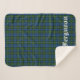 Scottish Clan Ferguson (Fergusson) tartan plaid pattern with Old English white font text overlay on a snuggly soft Sherpa blanket.
