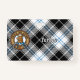 Clan Forbes crest badge surrounded by a strap and buckle over dress tartan background. Custom text on both sides.