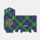 Clan Forbes crest badge surrounded by a strap and buckle over tartan. Custom text and monogram.