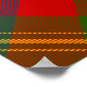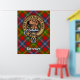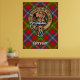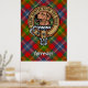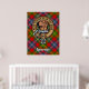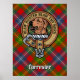 Clan Forrester crest badge surrounded by a strap and buckle over tartan background. Custom text.