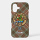 Clan Fraser crest badge surrounded by a strap and buckle over hunting weathered tartan background. Custom text.
