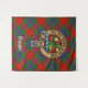 Clan Fraser crest badge surrounded by a strap and buckle over tartan background. Custom text.