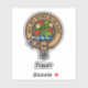 Clan Fraser crest badge surrounded by a strap and buckle over weathered hunting tartan background. Custom text.