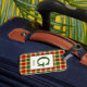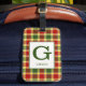 Luggage tag with the Clan Gibbs and Gibson tartan, dated to 1994. Colourful Scottish plaid pattern in bright red, yellow, and green, with navy blue and white highlights. Personalise with your initial and surname on a light coloured plate for easy legibility.