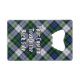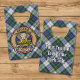 Clan Gordon crest badge surrounded by a strap and buckle over dress tartan background. Custom text on both sides.