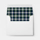 Envelopes with plaid liner feature the Gordon family formal dress clan tartan pattern. Traditional Scottish plaid in blue, green, and white, with yellow and black accents. Matching personalised stationery and return address labels available.