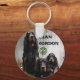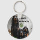 CLAN GORDON, Gordon Setter Generations Painting Keychain. Three Gordon Setters posing in front of wooden fence.