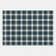 Gift wrap in Clan Gordon tartan variations. One sheet each of Clan Gordon tartan (blue and green plaid), Clan Gordon Dress tartan (blue, green, and white plaid), and Clan Gordon Red tartan (red, green, and blue plaid). Choose from matte or semi-gloss paper.