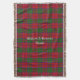 Colourful custom fringe end throw blanket made with graphics of the red, green, and blue traditional Scottish clan Grant tartan plaid pattern.  White old world style text can be personalised to read what you want.  Lovely gift idea for anyone.