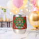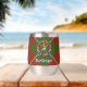 Clan Gregor or MacGregor crest badge surrounded by a strap and buckle over tartan background. Custom text on both sides.