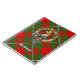 Clan Gregor or MacGregor crest badge surrounded by a strap and buckle over tartan background. Custom text.