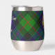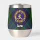 Clan Gunn crest badge surrounded by a strap and buckle over tartan background. Custom text on both sides.