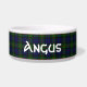 Traditional blue, green, and red clan Gunn tartan plaid around this white ceramic dog bowl. Custom white text is ready to personalise with your pet's name. Makes a great gift idea to a new dog owner.