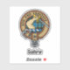 Clan Guthrie crest badge surrounded by a strap and buckle over tartan background. Custom text.