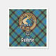 Clan Guthrie crest badge surrounded by a strap and buckle over tartan background. Custom text.