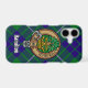 Clan Hamilton crest badge surrounded by a strap and buckle over hunting tartan background. Custom text.