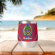 Clan Hamilton crest badge surrounded by a strap and buckle over red tartan background. Custom text on both sides.