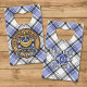 Clan Hannay crest badge surrounded by a strap and buckle over tartan background. Custom text on both sides.