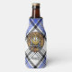 Clan Hannay crest badge surrounded by a strap and buckle over tartan background. Custom text.