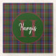 Monogrammed coaster done in a traditional and colourful Scottish clan Hargis tartan plaid pattern. A green circle has a monogram and family name. Personalise the monogram and name to suit your needs.