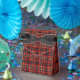 Colourful traditional Scottish plaid pattern in bright red, with black, white blue, green and yellow highlights.
