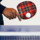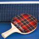 Stylish ping pong paddle features Scottish Clan Innes tartan plaid pattern with text overlay