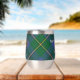 Clan Johnston crest badge surrounded by a strap and buckle over tartan background. Custom text on both sides.