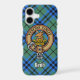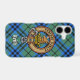 Clan Keith crest badge surrounded by a strap and buckle over tartan background. Custom text.