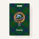 Clan Kennedy crest badge surrounded by a strap and buckle over tartan background. Custom text.