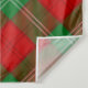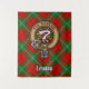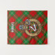 Clan Lennox crest badge surrounded by a strap and buckle over tartan background. Custom text.