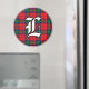 Decorate your fridge with these handsome tartan plaid magnets featuring the red and green colors of the Scottish Clan Lindsay with custom initial.