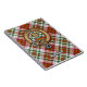 Clan MacAlister crest badge surrounded by a strap and buckle over dress tartan background. Custom text.