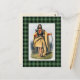 Postcard with a digitally cleaned and enhanced vintage watercolor illustration by Scottish artist Robert Ronald McIan, dated to 1845. Framed with the Clan MacArthur tartan, a traditional plaid pattern in green, black, and yellow. Digital tartan image created by Susan Wallace of Plaidwerx using thread count provided by The Scottish Register of Tartans.