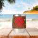 Clan MacAulay crest badge surrounded by a strap and buckle over tartan background. Custom text on both sides.