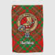 Clan MacAulay crest badge surrounded by a strap and buckle over tartan background. Custom text.