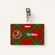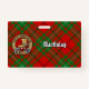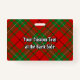 Clan MacAulay crest badge surrounded by a strap and buckle over tartan background. Custom text on both sides.