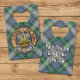 Clan MacDowall crest badge surrounded by a strap and buckle over tartan background. Custom text on both sides.
