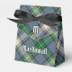 Clan MacDowall crest badge surrounded by a strap and buckle over tartan. Custom monogram. Custom text.