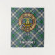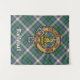 Clan MacDowall crest badge surrounded by a strap and buckle over tartan background. Custom text.