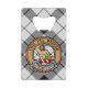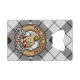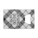 Clan MacFarlane crest badge surrounded by a strap and buckle over black and white tartan background. Custom text on both sides.