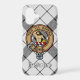 Clan MacFarlane Crest over Black and White Tartan