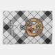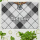 Clan MacFarlane Crest over Black and White Tartan Tea Towel