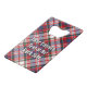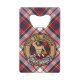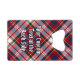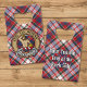 Clan MacFarlane crest badge surrounded by a strap and buckle over dress tartan background. Custom text on both sides.