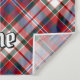 Clan MacFarlane crest badge surrounded by a strap and buckle over dress tartan background. Custom text.
