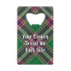 Clan MacFarlane crest badge surrounded by a strap and buckle over modern hunting tartan background. Custom text on both sides.